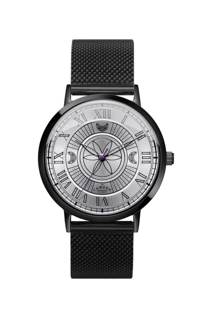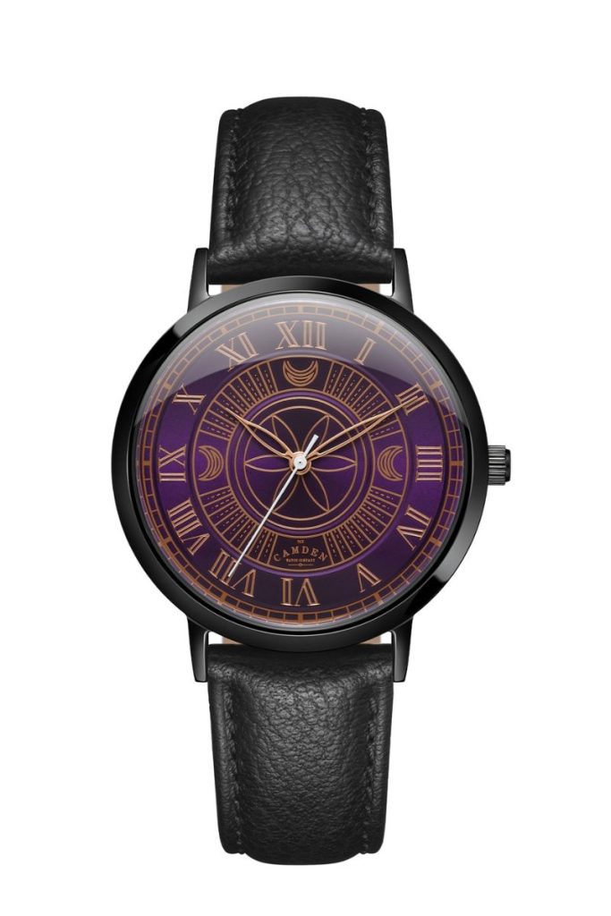 Anneke Short, Co-Founder and Designer of The Camden Watch Company says: “The background of Camden’s magical past became the cornerstone of an idea: what if we designed a watch filled with symbolism and meaning, a kind of talisman made for daily wear? So we set about researching, digging through tomes and old books, uncovering patterns and motifs we could bring to life. Eventually, we landed on the idea of witch marks, focusing in particular on the daisy wheel – a protective symbol once carved into walls to trap evil spirits within its endless lines. To this we added crescent moons at 3 and 9, forming the Triple Goddess. It’s a symbol rich with meaning, most commonly interpreted today as the Maiden, Mother, and Crone – representing life, death, and rebirth; new beginnings, nurturing, and wisdom.”