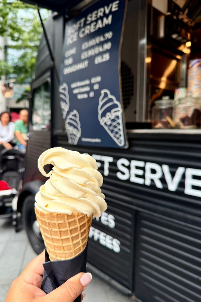 With a pizza oven and large seating area (plus a photo booth), Alfi was the right choice for me. I sipped on wine spritz’ s and decided to munch on garlic bread, burrata and a freshly made Vongole. With a happy tummy, I needed to walk it all off in order to make space for something sweet. To my amazement, I stumbled into a dance session in the square which made me feel like I had stepped straight into a live rom-com movie. Watching all the couples and families dance what I think was the tango, was so wholesome. It also gave me the excuse to stop and eat my soft serve ice cream cone, the perfect dessert for me.