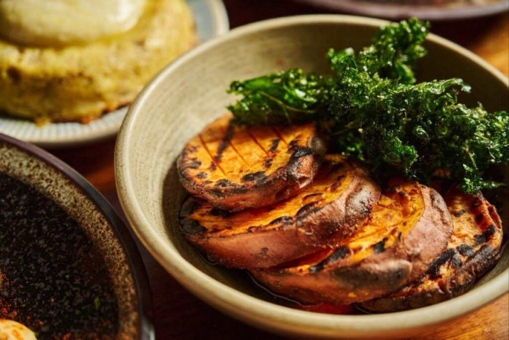 Featured dishes include boquerones – marinaded anchovies served with extra virgin olive oil, dill and charred focaccia (£9); stuffed Medjool dates – Medjool dates filled with goats cheese mousse and wrapped in Iberian lardo (£6); homemade rosemary and confit garlic focaccia with North South olive oil and Pedro Ximénez balsamic vinegar (vg) (£5); Salchichón Ibérico with cornichons (£6); and Chorizo Ibérico bellota with baby artichokes (£6).