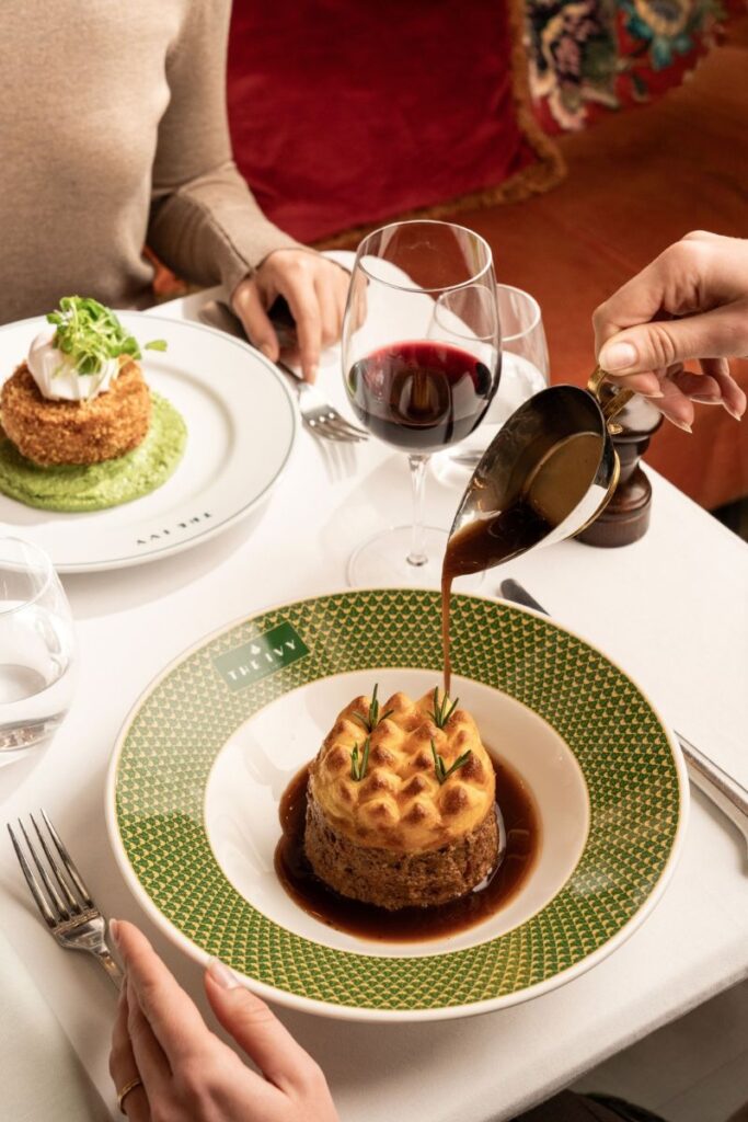 Guests needn’t stop there, as for an additional £4.95 there are a selection of delectable desserts, including a Flambéed Crème Brûlée and Sticky Toffee Pudding. For a £2.95 supplement, guests can enjoy in the iconic Ivy Chocolate Bombe with vanilla ice cream, honeycomb and hot caramel sauce.