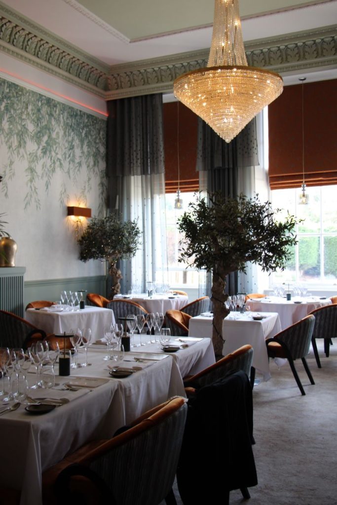 In the morning we arrived for breakfast, fresh from the best night’s sleep we’d had in a while. The exquisite dining room, where breakfast was served, featured huge gold plated chandeliers  which created the softest lighting. Tables were placed between lush olive trees, bringing a sense of calm and a nudge towards nature. The huge Georgian windows allowed the morning sun to fill the room creating dappled shadows through the olive trees and onto the walls.