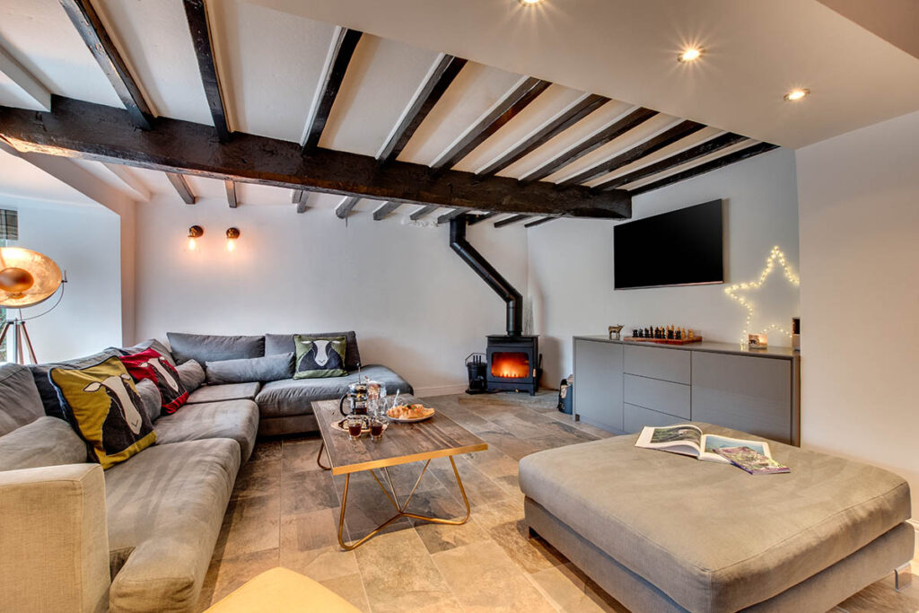 From the outside the property seems small, but on entering you soon find yourself in a Tardis, including a large living room with original wooden beams and a huge comfortable sofa. The size of the sofa is unsurprising when you consider that this property includes five double bedrooms, two with en suite, plus two further main bathrooms. The accommodation would be perfect for small groups – a special birthday or perhaps a New Years Eve get-away with friends.