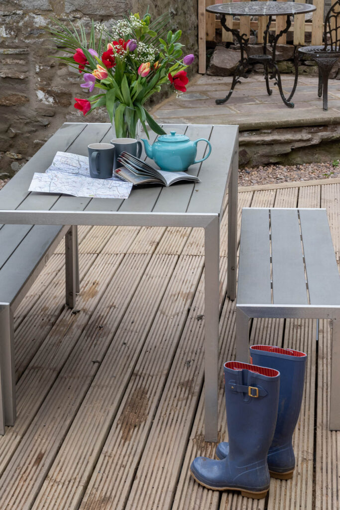 Waiting for us was a welcome tray with complimentary tea and coffee, Yorkshire Parkin biscuits and a block of Wensleydale cheese, which we thought was a lovely touch. The kitchen boasts a huge dining table to seat 10 guests comfortably and includes all the appliances you would expect and even a wine chiller. There were plenty of pots, pans and crockery to rustle up our culinary delights, but not before checking out the hot tub and breathtaking views of Wensleydale, out on the decked garden.