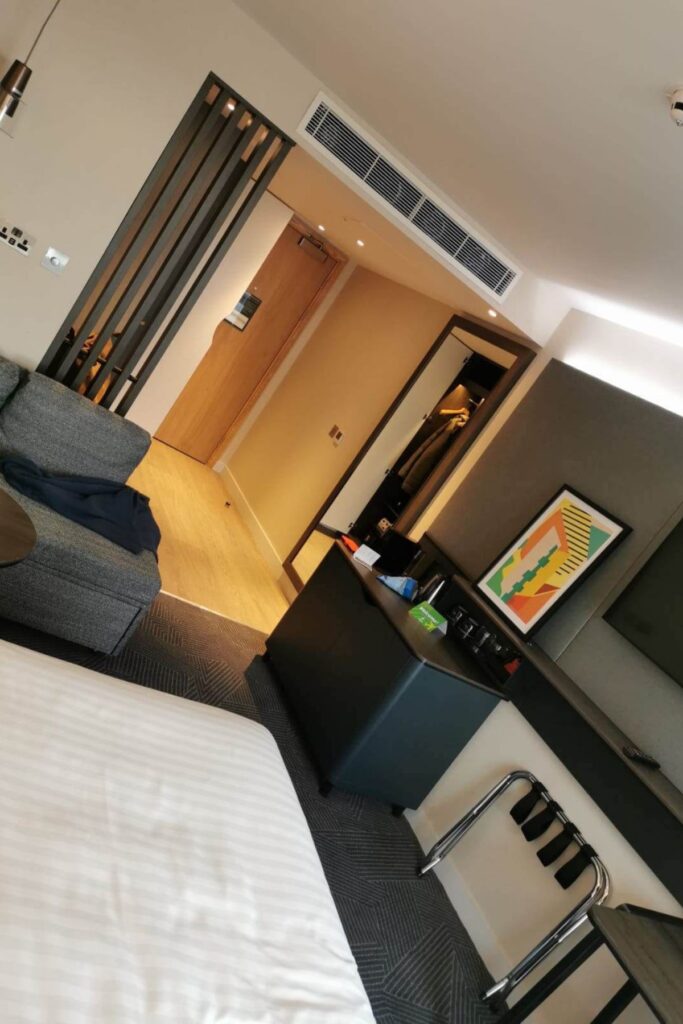 Inside the room it’s exactly what you’d expect from a Holiday Inn, comfortable bed, good sized wardrobe, smart TV, fridge, and excellent shower room. The one thing I wasn’t expecting was to be upgraded to a Premium Room, which also included a large relaxing sofa bed, and mini bar with complimentary drinks and nibbles.