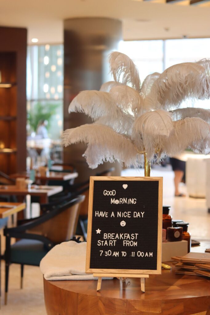 Located on the ground floor is The Locale, a bright and laidback restaurant. Here we were presented with a buffet like no other. Spread out along the length of the whole restaurant were different stations of every breakfast food you could think of. We’re talking, fresh pastries, cereals, eggs of any type, from hot to cold, small to large, meat to vegan this buffet had it all. Without doubt the best breakfast buffet we had seen anywhere in the world. But this is Dubai where nothing seems to be a problem so, if you’d prefer table service, they offer this too.