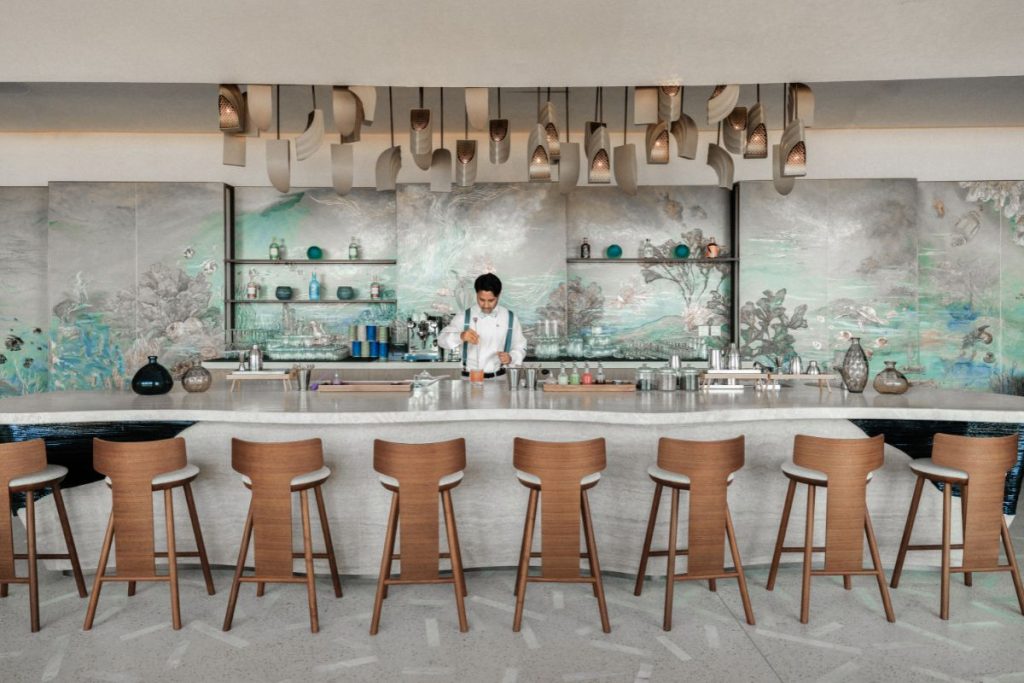 Blending exploration with luxury, The St. Regis Red Sea features 90 expansive beachfront and overwater villas, each with a private pool, outdoor deck, and uninterrupted sea views. Interiors flow seamlessly to outdoor living spaces, encouraging guests to immerse themselves in the elements. Restaurants and bars showcase global flavours, complemented by the signature St. Regis Bar and its celebrated Bloody Mary ritual. A tranquil spa with outdoor cabanas, a yoga pavilion, and sea-inspired therapies anchors the resort’s wellness offering.