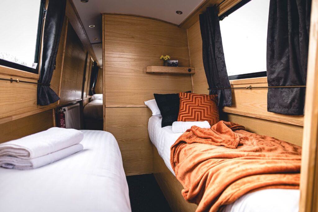 The 58ft ‘Oriental Plover’ semi-traditional stern* narrowboat for up to five people will be available to hire from Whitchurch on the Llangollen Canal in Shropshire. ‘Oriental Plover’ will have two cabins: the rear can be configured as one double or two singles, with optional wider beds; and the mid cabin will have a permanent double bed. The seating/dining area in the saloon can be converted into a single bed in the evening, if required. The bathroom has a hand basin, flush toilet and shower with bi-fold doors.  The boat has a fully equipped galley kitchen, two televisions and free wifi.