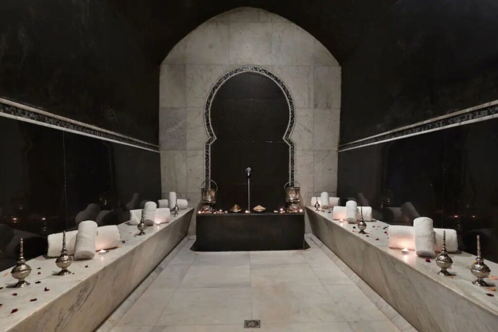 It’s hard to put into words how jaw-droppingly beautiful this hotel is. It rather reminded me of a Bond villain’s home. Sky high ceilings and glass windows flooded the reception with natural light. As you enter, you instantly feel lighter, and sweet Moroccan tea certainly helps soothe the trials and tribulations of travel.
