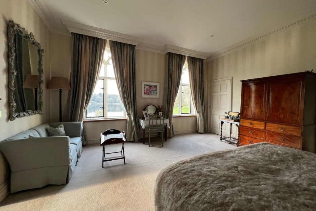The North Wing contains two bedrooms: The Salamanca, a large, light and airy suite with a super king size bed, its own sitting room and a huge bathroom, complete with freestanding bath. The bath is grandly positioned in the centre of the room, directly in front of a large gothic window overlooking the lake. The fact that North Wing is not overlooked by anything other than nature really comes in to its own here, as you can soak in the bath whilst gazing out at the stunning countryside and the mere. I’d suggest enjoying a bath as the sun rises or sets to make the most of this perfect view.
