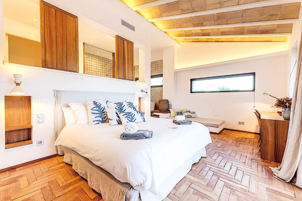 Villa Renee in Croatia takes the trophy for ‘best costume design’ in our villa awards thanks to its unique living space, which plays host to a magnificent 1,000-year-old olive tree. This characterful centrepiece is complemented by a soft, neutral colour palette, textured furnishings, and wooden accents. The same aesthetic continues throughout the villa, giving an overall vibe that is cosy, elegant, and effortlessly stylish.