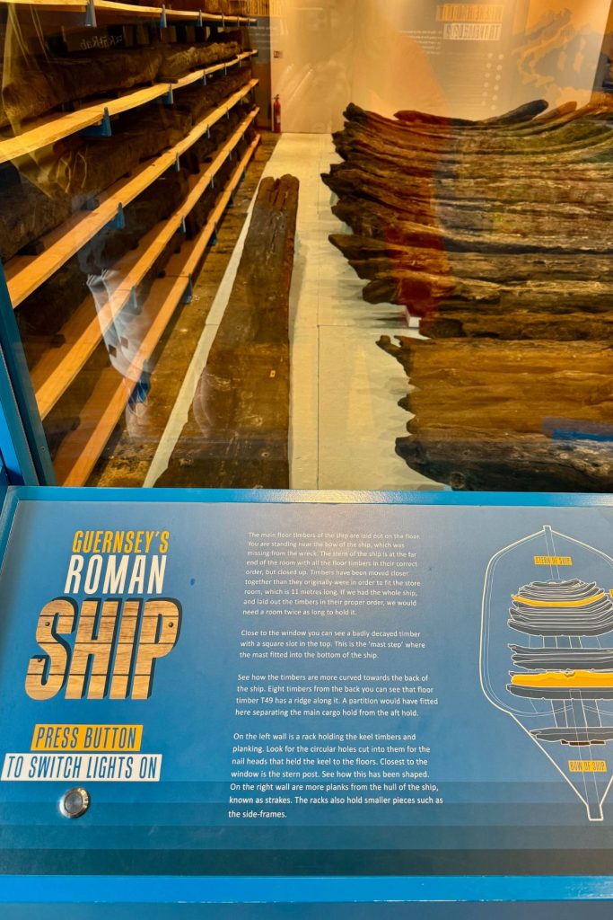 We saw hidden trenches and bunkers left untouched from the war and German occupation of the island, and from there we visited Guernsey’s Roman Ship. Yes, an actual Roman ship dating to around AD 280, which sank in St Peter Port harbour after a fire onboard. Timbers from the wreck have been preserved and assembled, and are being temporarily displayed in a temperature controlled environment. We were in awe at the size, the ruggedness and the fact that we were actually looking at a real Roman ship!