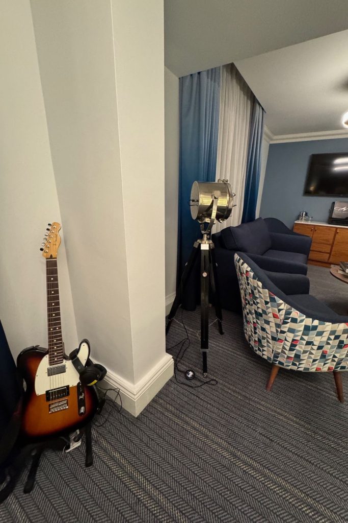 Like us you can channel your inner rockstar in a spacious king room, which comes complete with a lounge area, electric guitar and Marshall amp, turntable record player, complete with a selection of LP’s and a complimentary minibar which is restocked as required! Access all areas with the VIP benefits of Back Stage and really feel like a rockstar. This was an amazing experience and we took full advantage of all of these benefits.