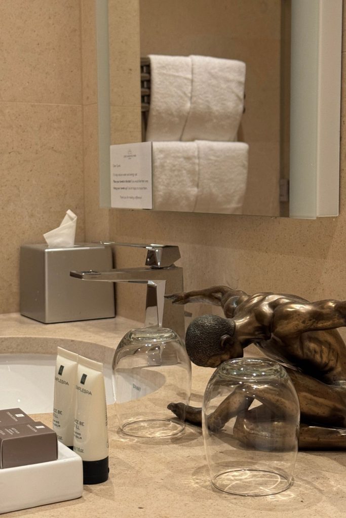 Its renovation skilfully splits the hotel into two wings while keeping those rooms satisfyingly spacious. Our suite was perfect for two sharing as a twin. It was giving expensive reno. Lush, thick carpets underfoot, a hallway leading past a serene atrium, and a chic vanity-desk nook, perfect for sending some last-minute emails or as a secondary vanity space.