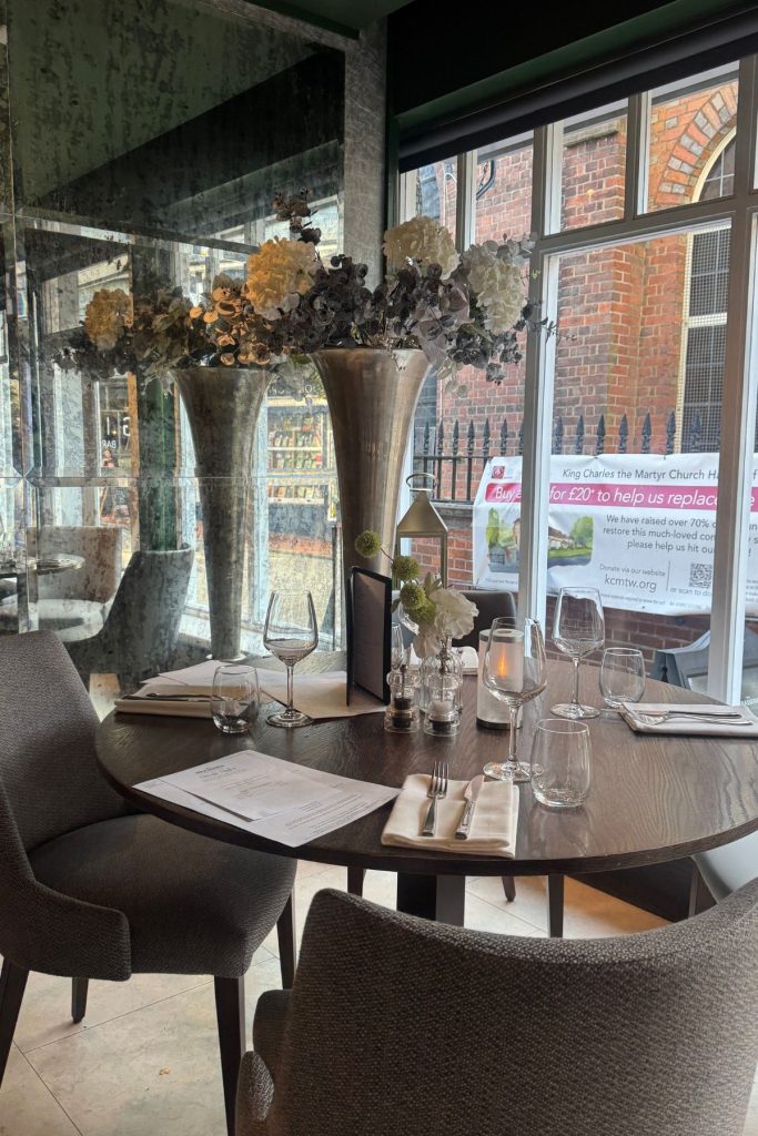 The bedroom itself was generous, anchored by Hypnos beds which gave us both a solid sleep. Two sash windows framed views of the Pantiles, letting in soft light that made the Temple Spa products in the vast, rainfall-shower-fitted bathroom even more indulgent. And breakfast, cooked to order, sent us out fortified for our next adventure.