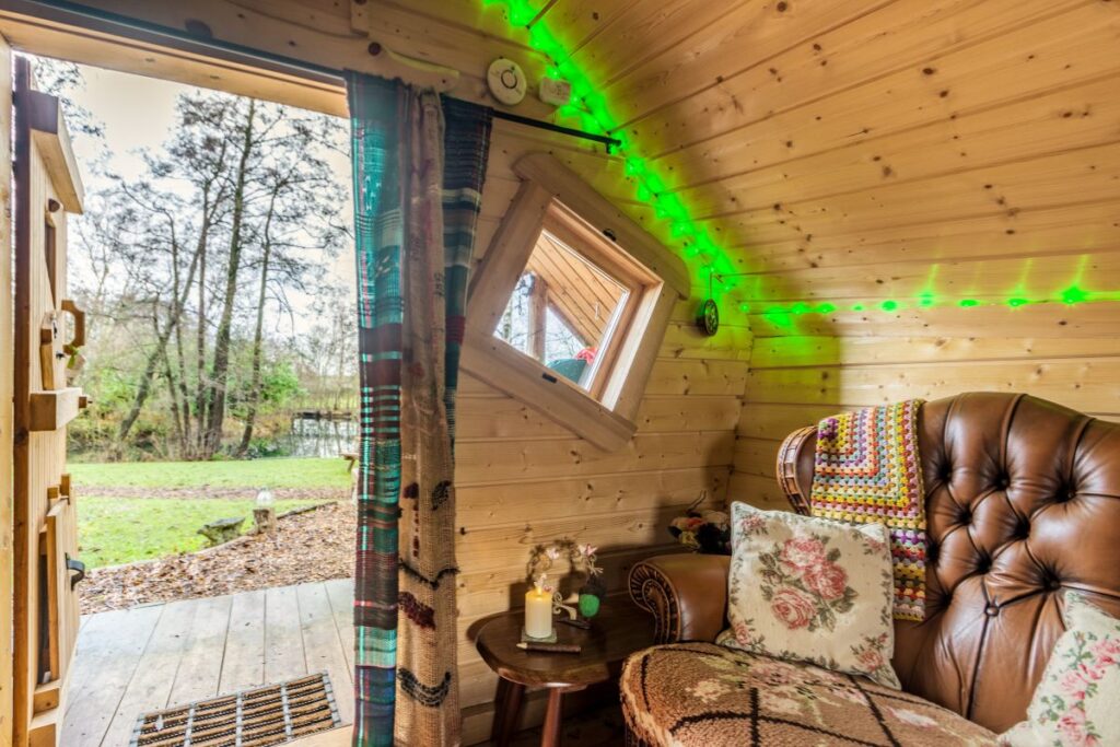 Step onto the veranda and sink into the rocking chair as you take in the calming lakeside views, the perfect place to enjoy morning coffee or watch the sun dip behind the trees. Set within an award-winning ecological site, guests can wander through woodlands and meadows, meeting resident alpacas and spotting wildlife from kestrels and owls to bats and dragonflies, bringing their own adult fairy tale to life.
