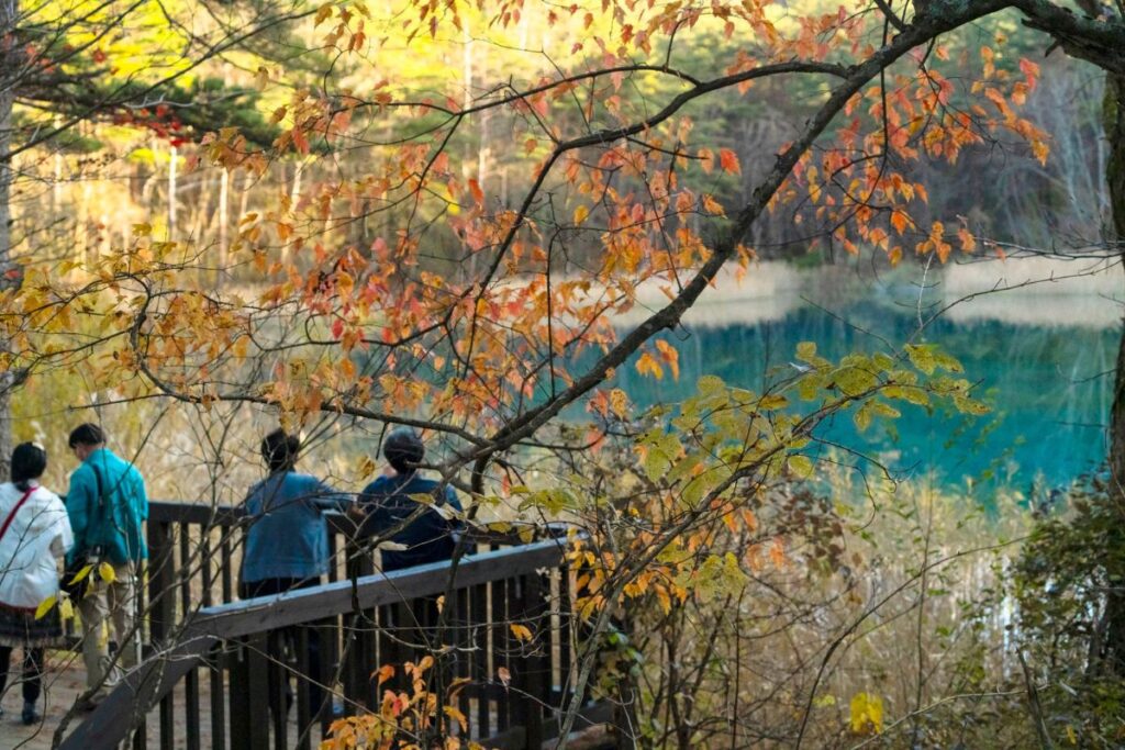 Don’t miss the beautiful contrast of blue and red at the Goshikinuma Ponds, or five-coloured marshes, located just north of the volcanic Mount Bandai. Here, the striking blue colour of the lake changes subtly throughout the day and none are identical. The bright red and orange autumn foliage that surround the ponds offers a magnificent contrast and make for gorgeous photos.